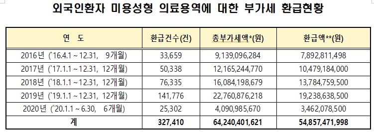 지방소득세 더 알아보면 아울러 최근 5년간 외국인환자 현황을 보면 전체 외국인환자는 2015년 37만 493명에서 2019년 59만 866명으로 59.5% 증가한 반면, 미용성형 외국인환자는 2015년 7만 3163명에서 2019년 17만 5688명으로 무려 140.1% 급증했다고 합니다.
