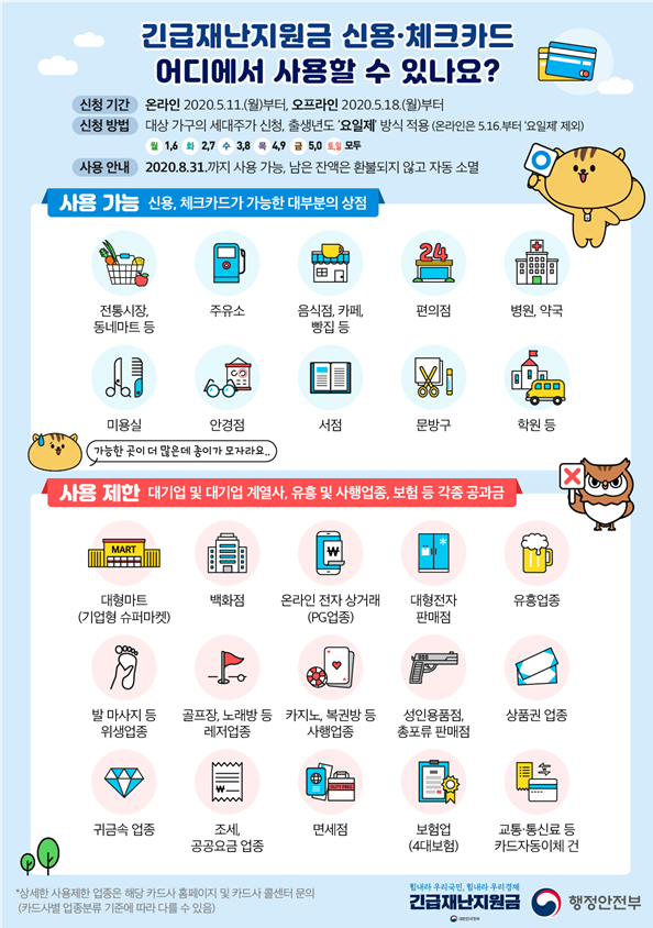 긴급재난지원금 신용체크카드 신청, 11일 부터 실시